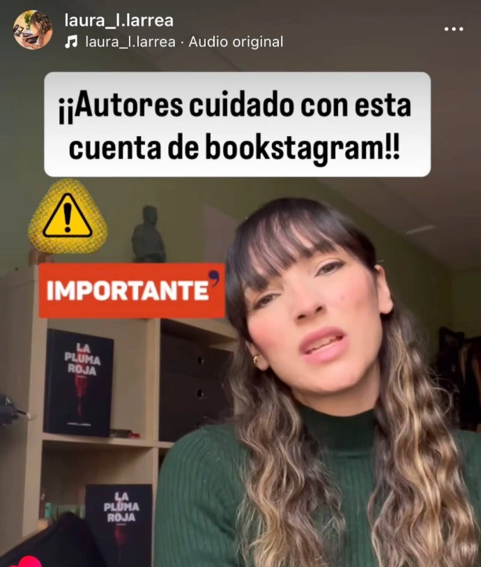 El pasado 11 de enero desde la cuenta de Laura L. Larrea, autora de La pluma roja nos hace llegar un aviso sobre una cuenta (o más bien varias) en específico con la que ha colaborado de forma reciente con su novela. Según nos cuenta la autora, la bookstagrammer se puso en contacto con ella (el primero de ellos) para colaborar con su primer libro publicado. Ella, ilusionada, preparó el libro y lo mandó firmado y la colaboración marchaba viento en popa como suele ocurrir en la mayoría de los casos.