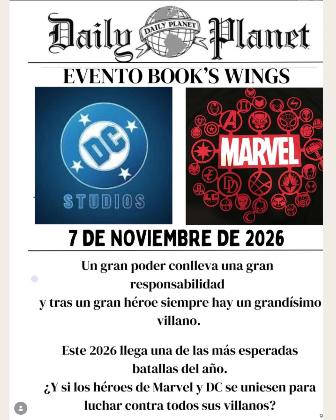El evento se celebra cada año en Barcelona y reúne, lectores, bookstagrammers y autores en una jornada temática concreta. A lo largo de sus ediciones, Book’s Wings ha viajado por universos tan distintos como el oeste, los ángeles y demonios, Harry Potter, Alicia en el País de las Maravillas, el imaginario de Tim Burton o, en la edición de este 2026, el enfrentamiento entre superhéroes y villanos.