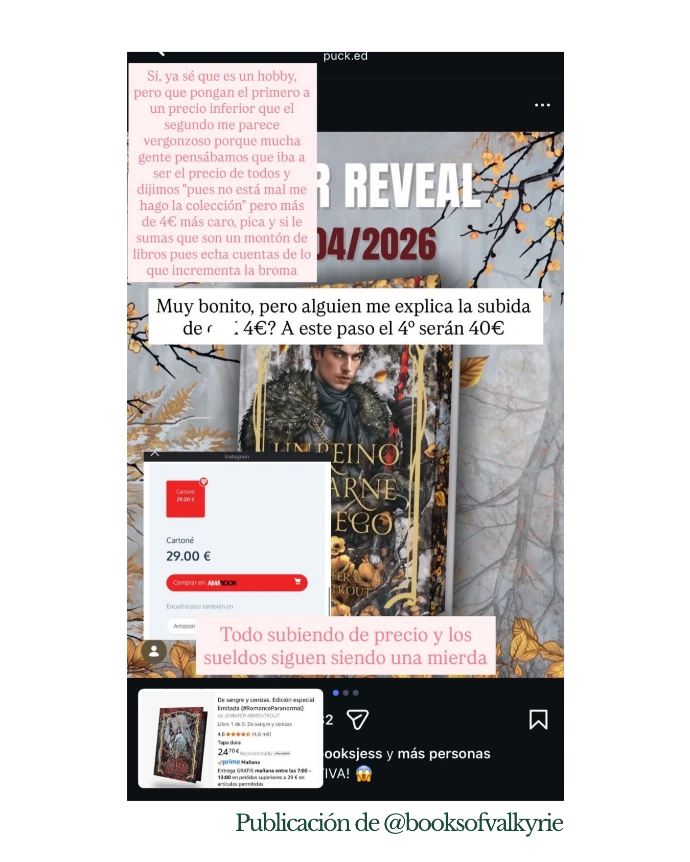 En redes, la reacción ha sido inmediata. Muchos lectores señalan que el problema no es una subida puntual, sino una tendencia constante en una saga larga, que obliga a invertir cada vez más dinero si se quiere mantener la colección completa. “Cuatro euros más por libro, multiplicados por diez o más volúmenes, es un pastizal”, resume una de las críticas más repetidas.