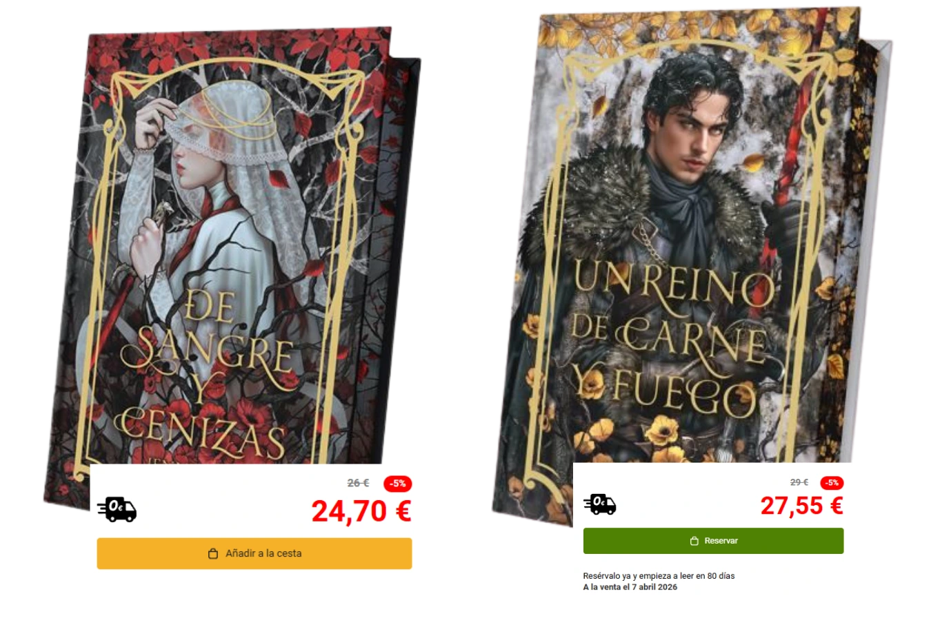 Nacida de sangre y cenizas alcanzó los 25 € y La primigenia de sangre y hueso ya se mueve en torno a los 29 € en preventa. La edición especial ha seguido el mismo camino: el primer volumen se lanzó a 26 €, mientras que el segundo asciende a 29 €, sin que exista una explicación clara por parte de la editorial.