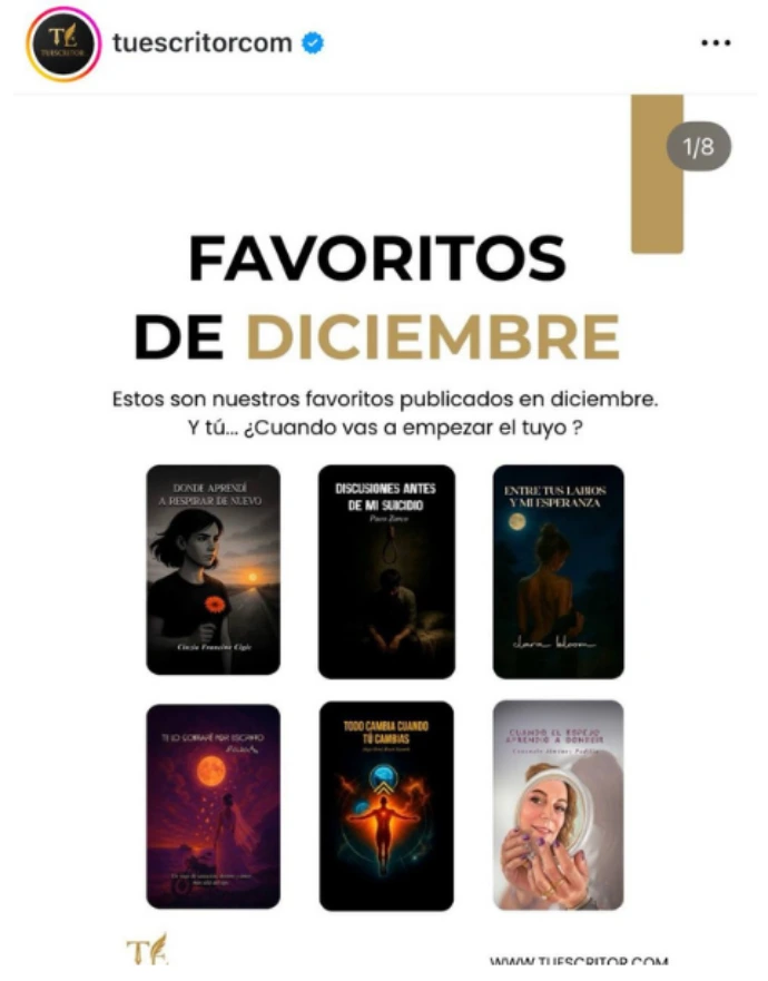 Su perfil aparece colmado de testimonios de autores que han publicado su libro con ellos y, además, varios episodios de podcast con consejos sobre cómo “hacerse de oro plasmando tus ideas en papel [...] lo que nos llevaría a ganar más de 250.000€”. Pero si analizamos en detenimiento los videos sobre los libros que “publican”, bien podríamos decir que se trata de un lugar donde los “autores” relatan sus testimonios traumáticos con el fin de esperar que sirva de aprendizaje para el lector, aunque también hay algún titulo que podría enmarcarse como fantasía.